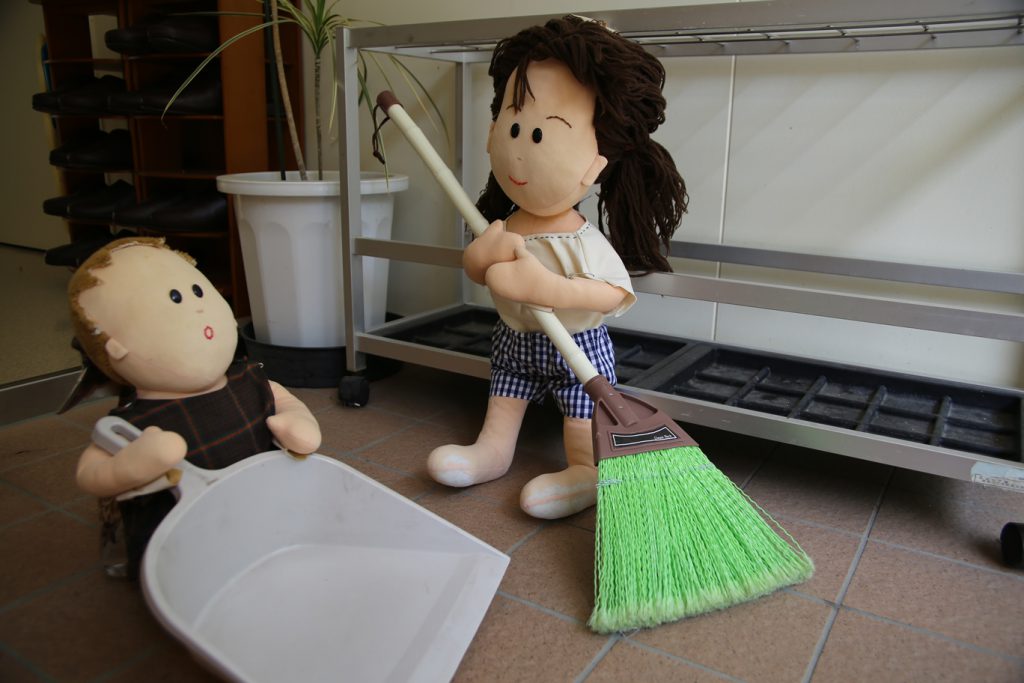 きょうだいなかよく げんかんの はきそうじ!!
