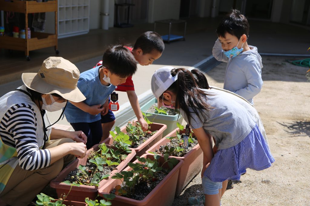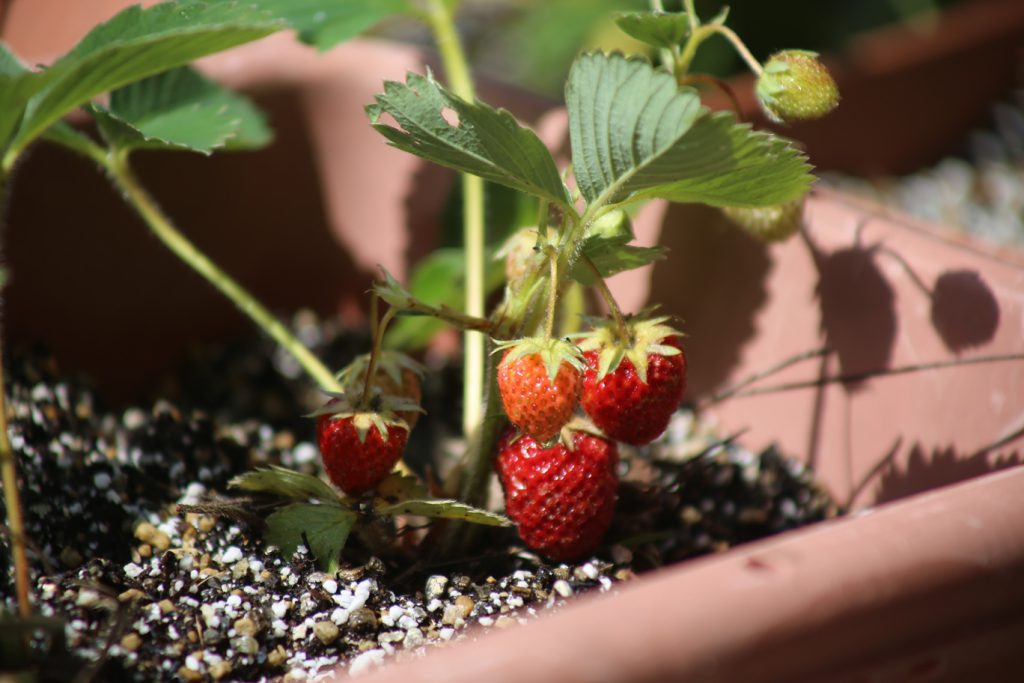ぷらんたーに うえかえた いちごが
