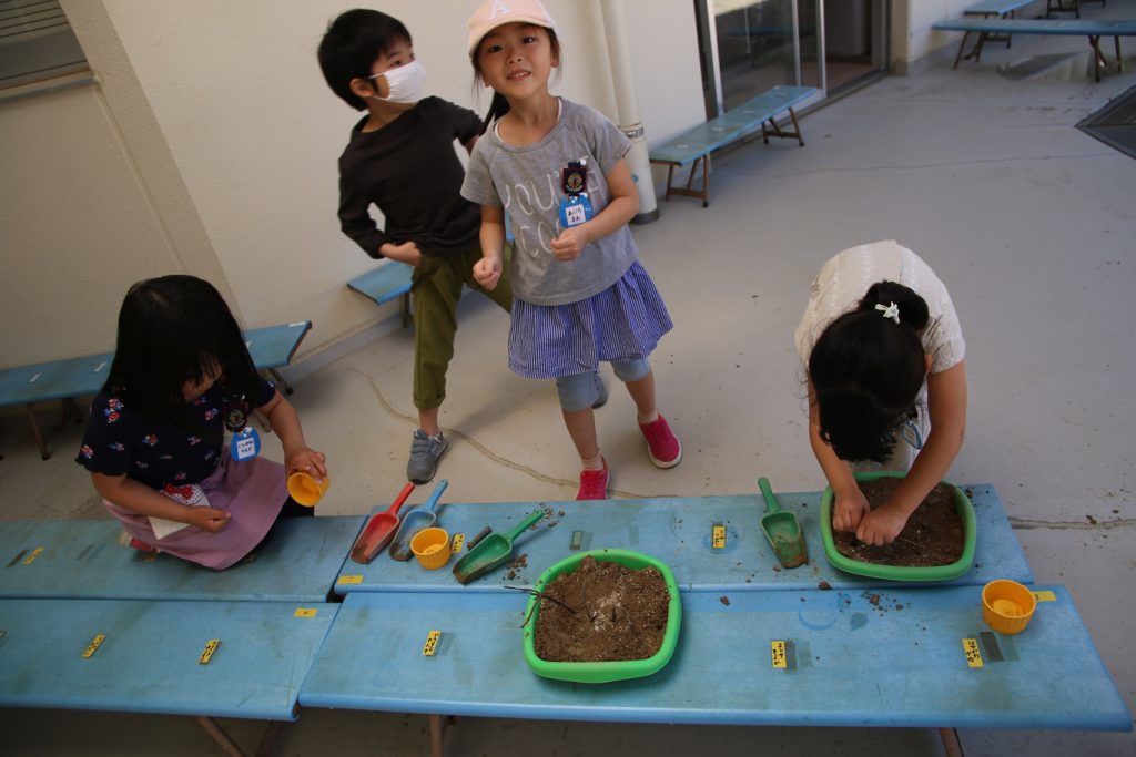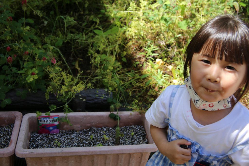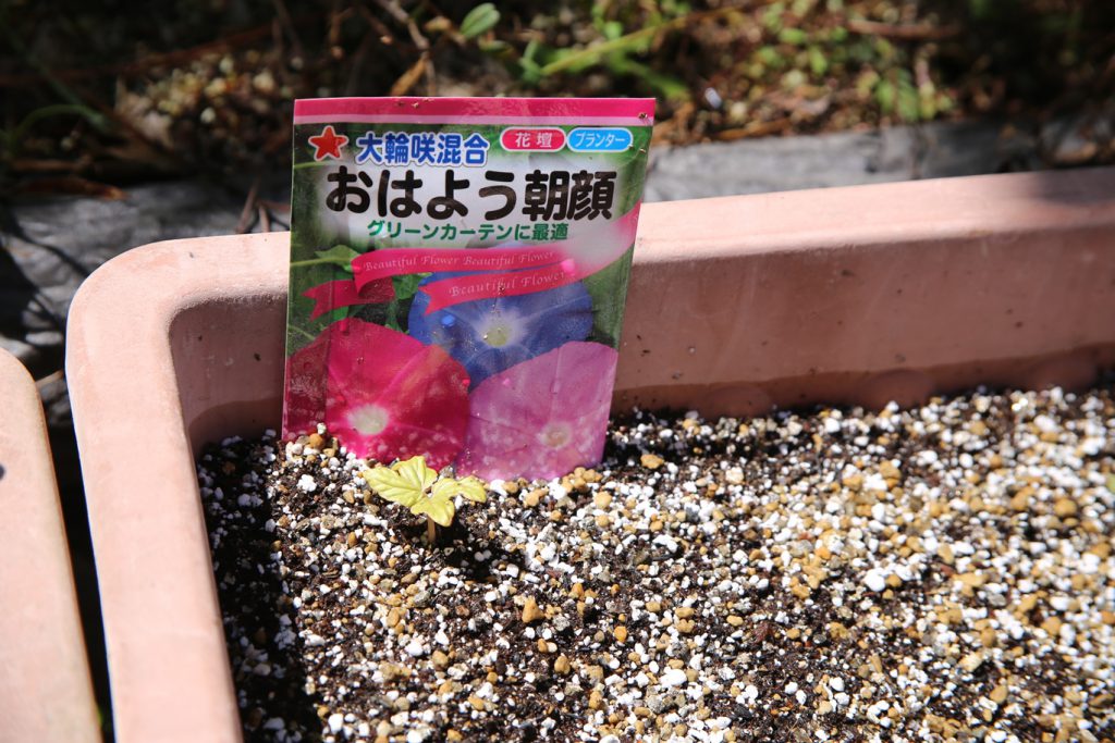 あさがおから めがでたね!