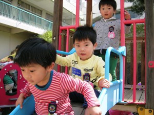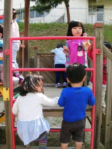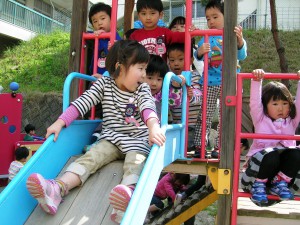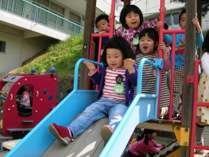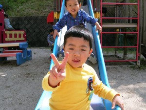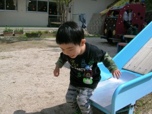 一生懸命はしごを登る後姿・・・ 滑りきって嬉しくてほころぶ笑顔・・・