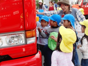 大きなはしご車、救急車、ポンプ車など、大集合!