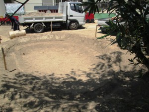 そこで、ビオトープ専門の業者さんに下園庭西側にビオトープ作りを依頼しました。。