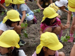 いも苗植えは、経験上3回目の子ども達、お手のもの