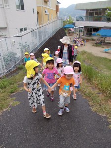 初めて参加する年少さんは、年長児が畑まで誘導してくれます。