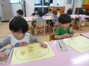 クレパスを使い、大きなお皿に