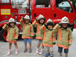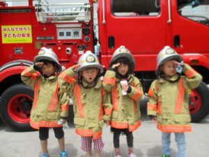 年長児が、幼年消防クラブ研修行事の一環として、