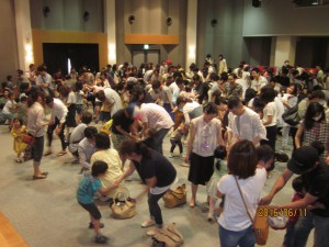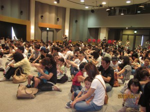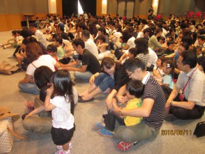 大学のホールを借りて、全学年親子集結で会場はいっぱい