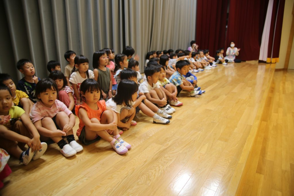 食い入るように見つめる年中児…