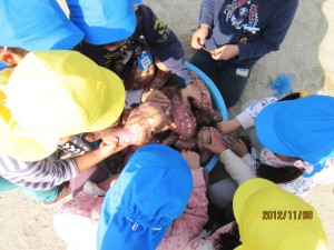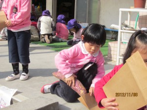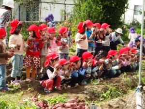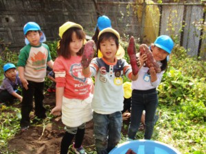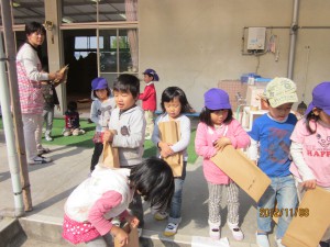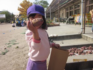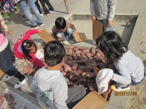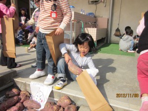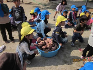一方、年中さんでは、掘ったおいもをお家に持って帰る準備
