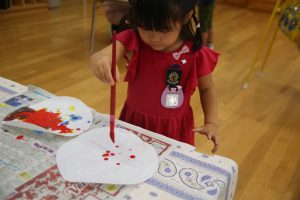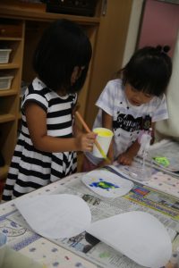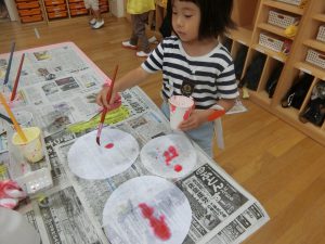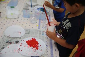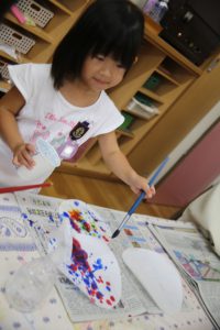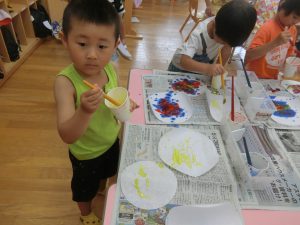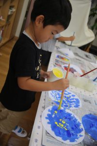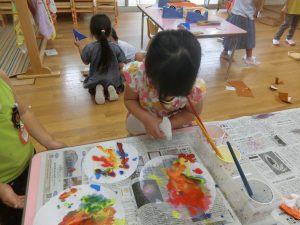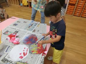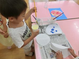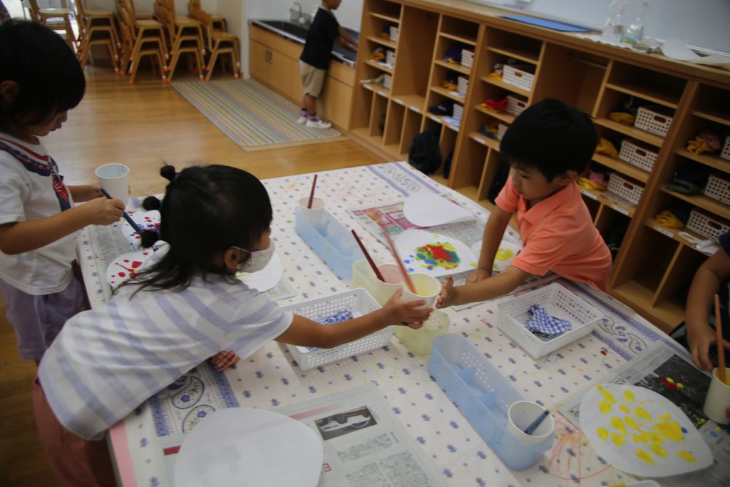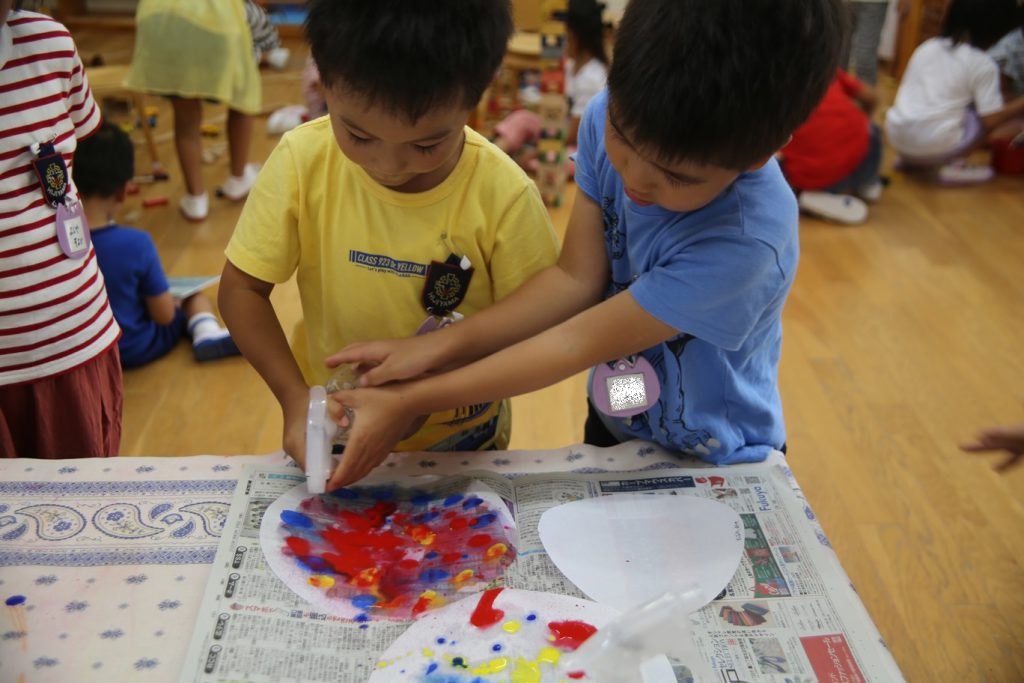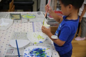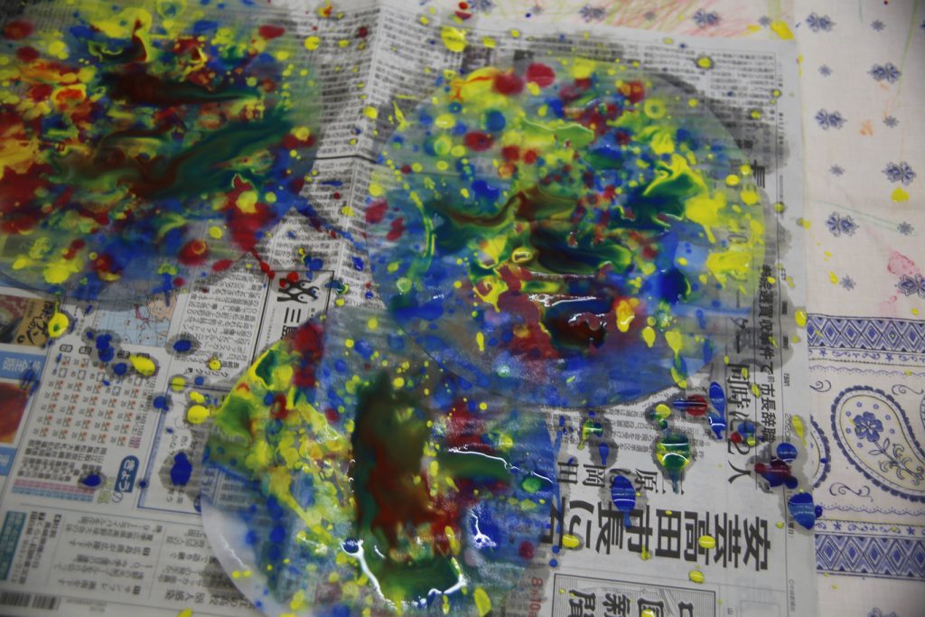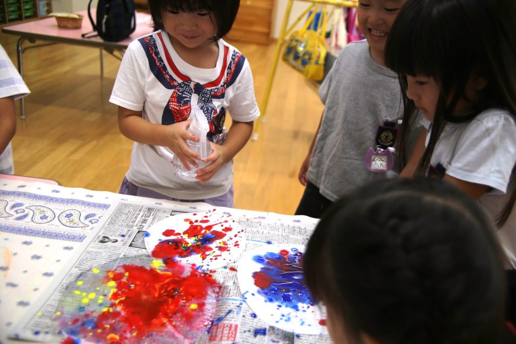 「色が混ざってきたよ!!」「ムラサキができた?」
