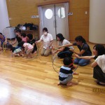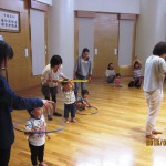 フープを使った遊びでは、さまざまな遊び方ができますね。