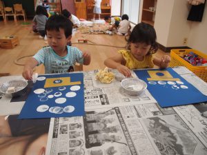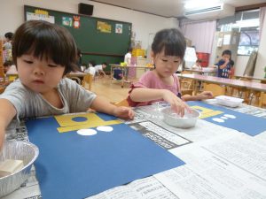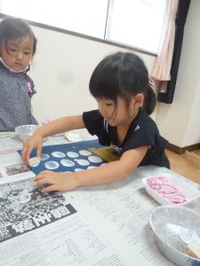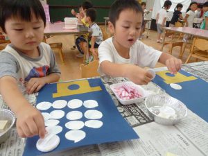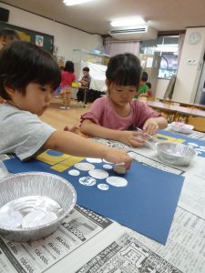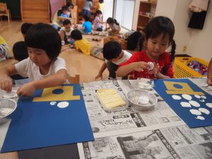 みんなで、お月見だんごを作りました。