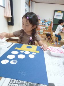 年少さんでは、お月様の絵本を見たり、
