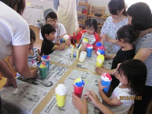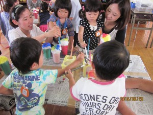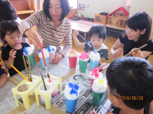 絵の具と筆を使って・・・「おいしくな~れ おいしくな~れ」