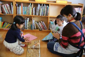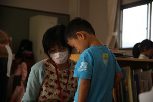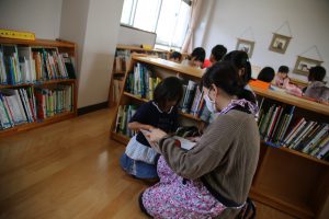図書貸し出しの時間では、子ども目線で、