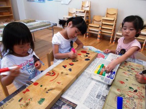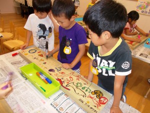 自分の来ているTシャツの絵柄と同じ絵を描いてみたり・・・