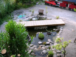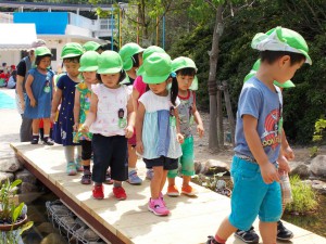 さっそく、ビオトープの見学です。(生き物の放流は、まだなの・・・ごめんね)