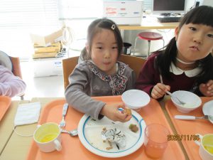 年長さん、大学での給食試食会