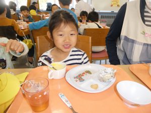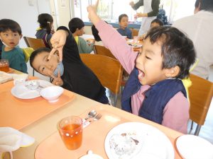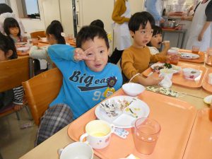 年長児、レストランへ(給食二回目)