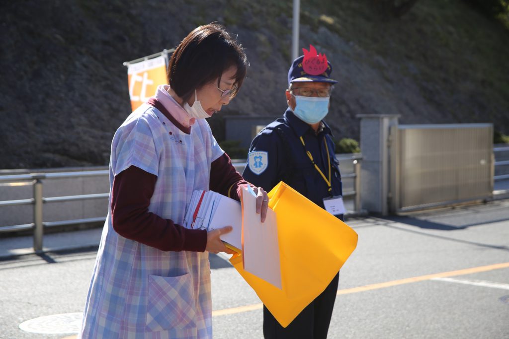 今回は、二次避難場所までの移動を含む訓練です。