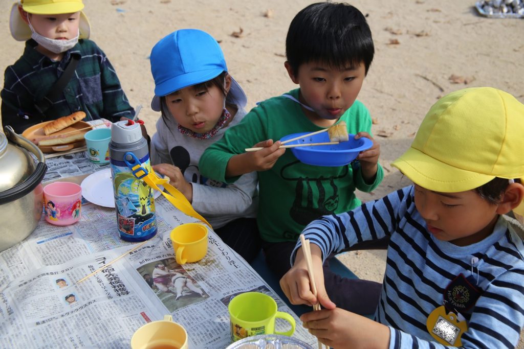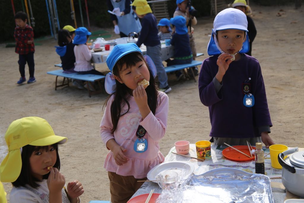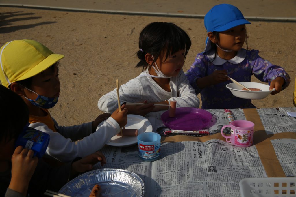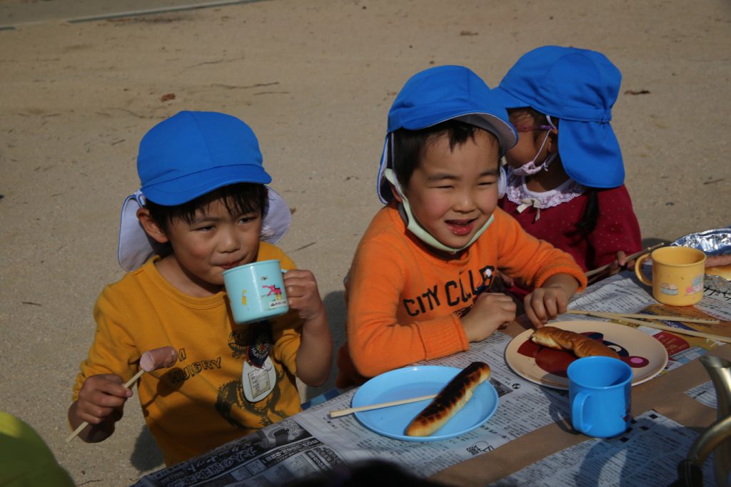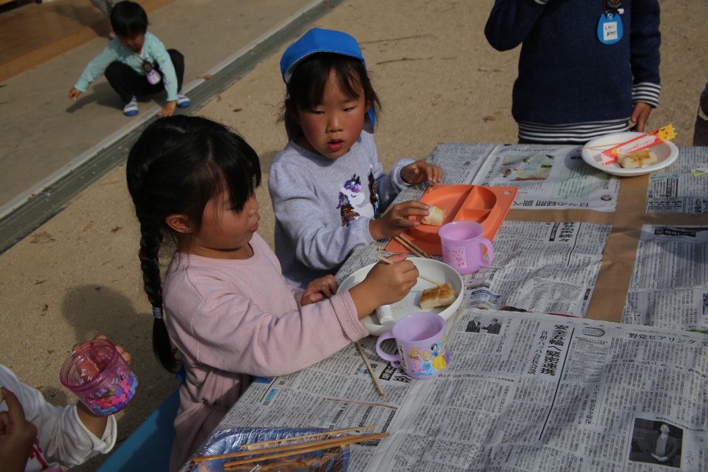 園庭が丸見えの年中児は、お弁当を済ませると、