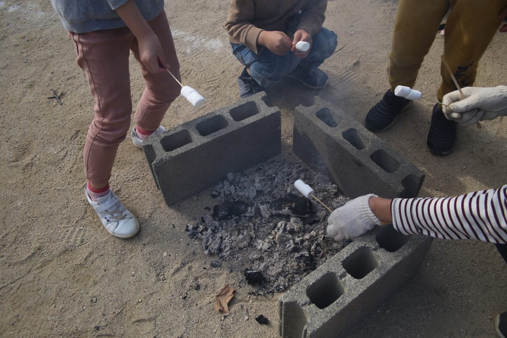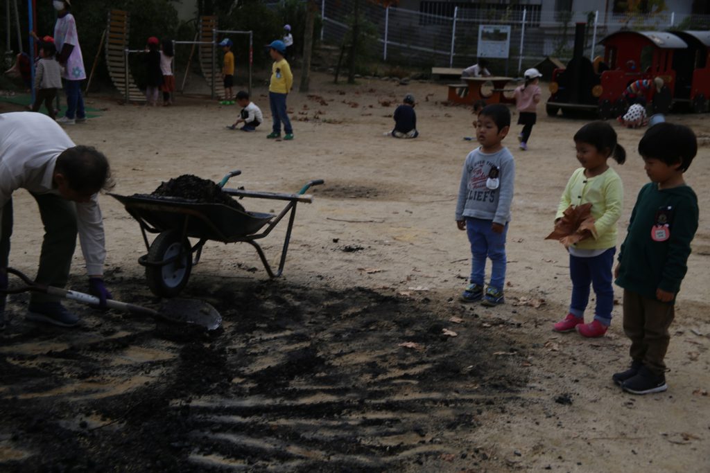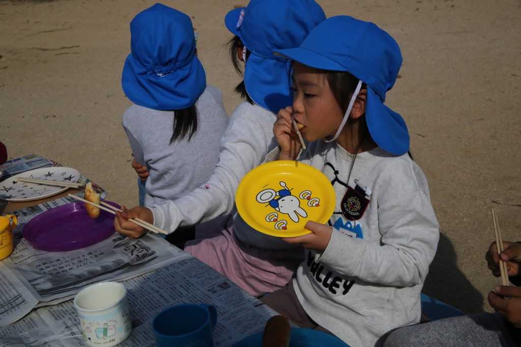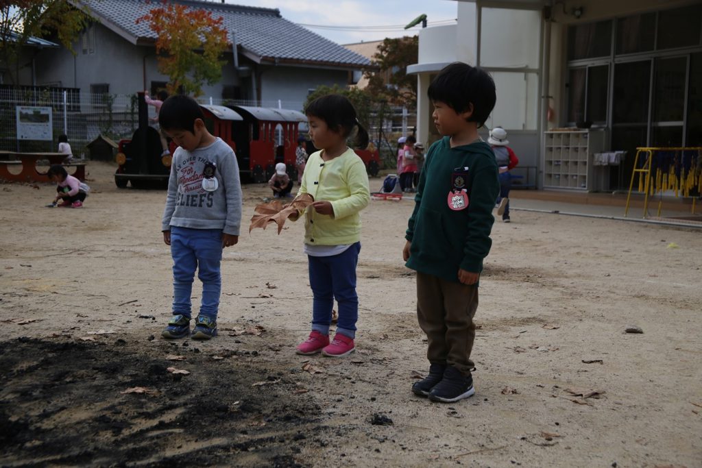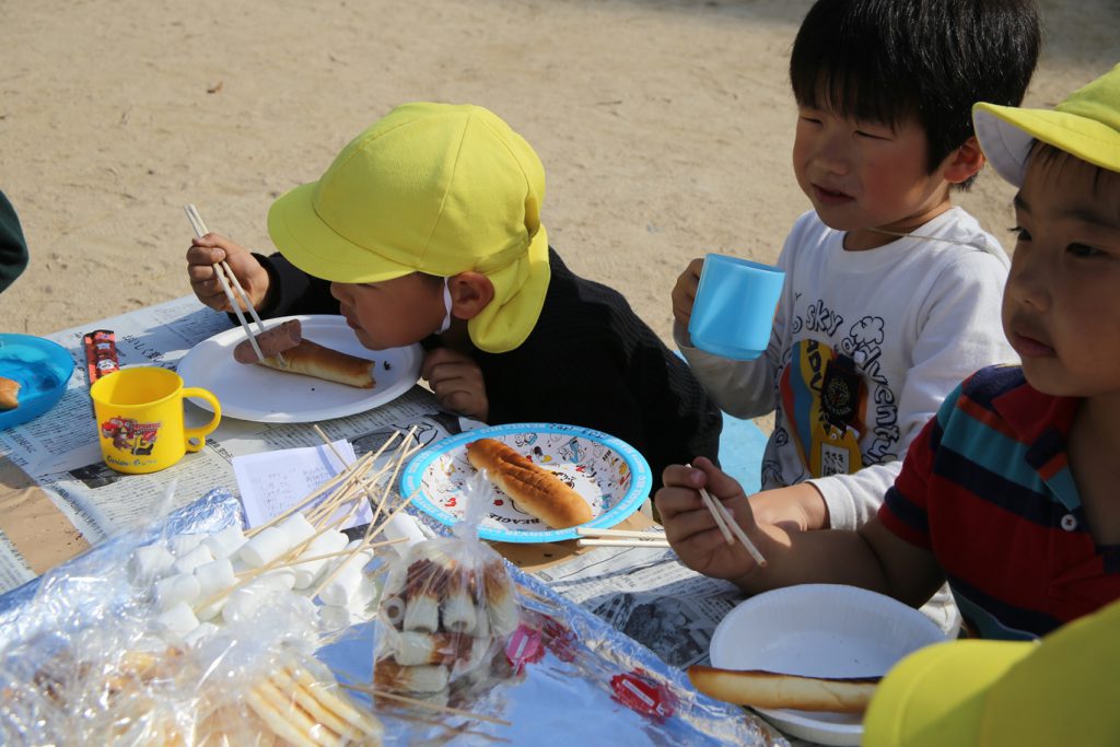 園庭が丸見えの年中児は、お弁当を済ませると、