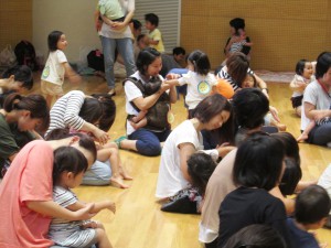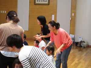 10/1の運動会で踊る、親子リズムダンス「こちょこちょマンがやってきた」を踊りました。