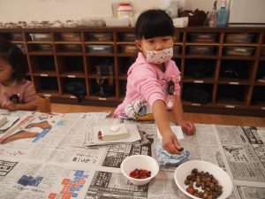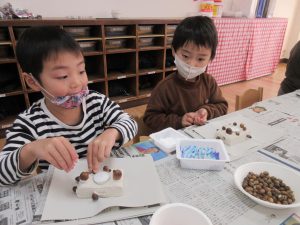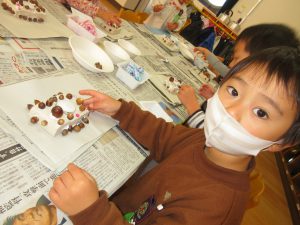 木の実は、ボンドをつけながら