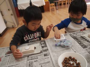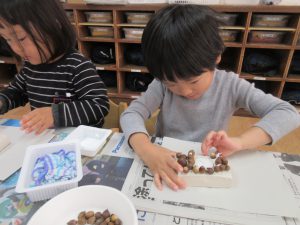 お家の方々にご協力いただいたどんぐりを、