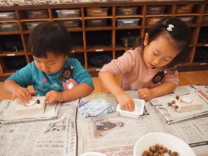 紙粘土がカチコチに固まるのが楽しみです。