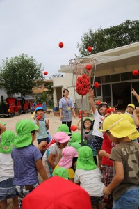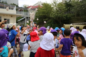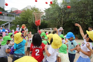 年少さんは、憧れの初めての玉入れに夢中・・・
