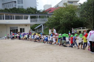 今年の運動会は、雨天で大学アリーナにて行いました。