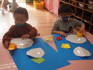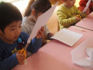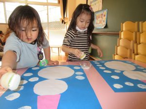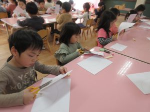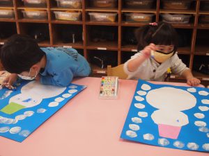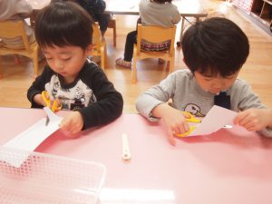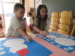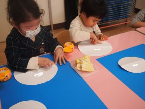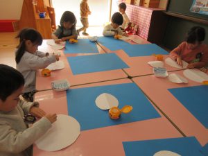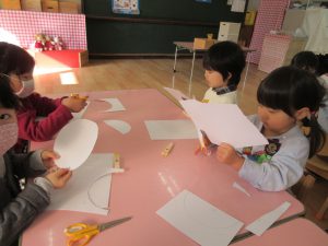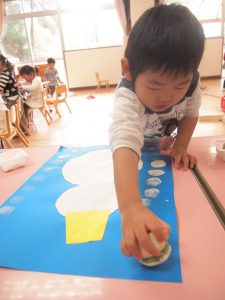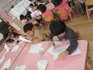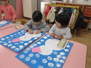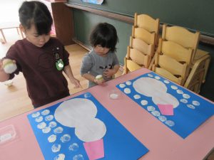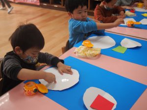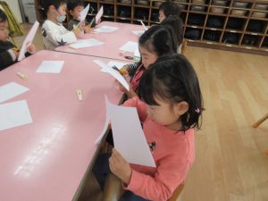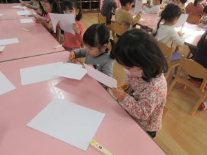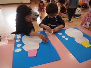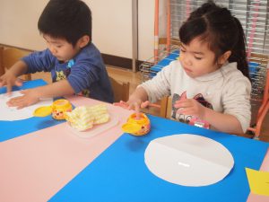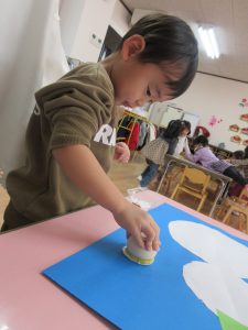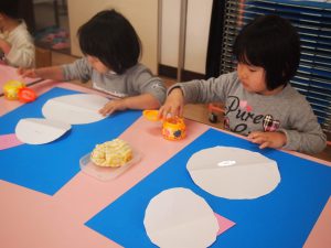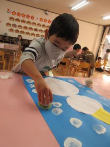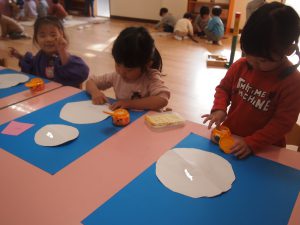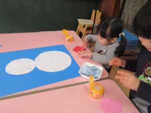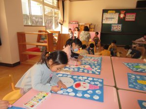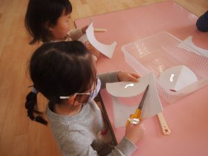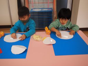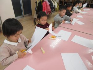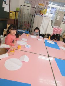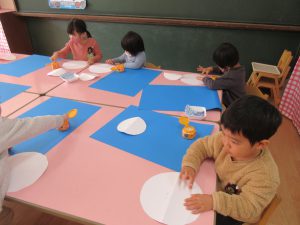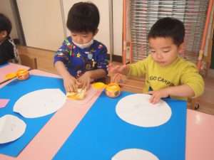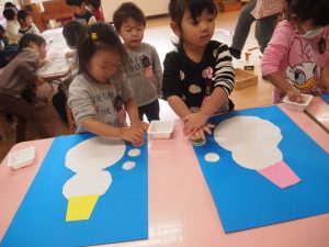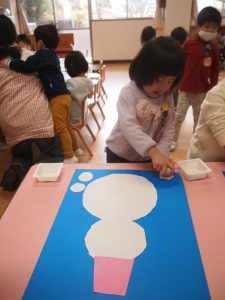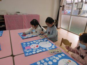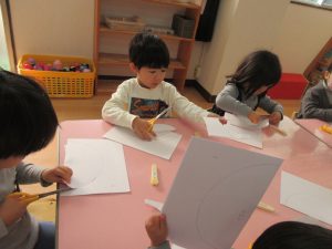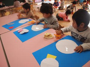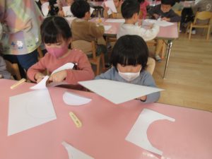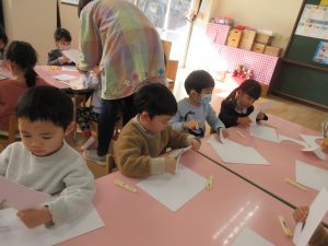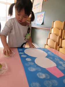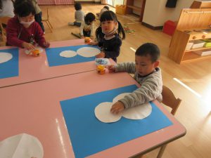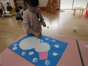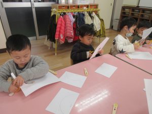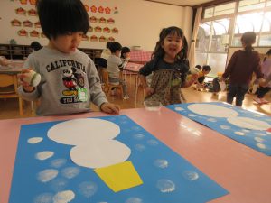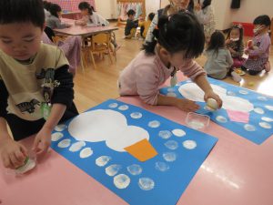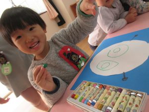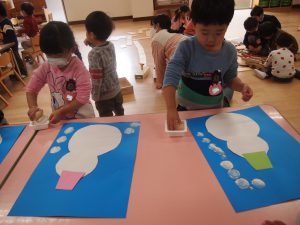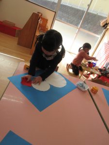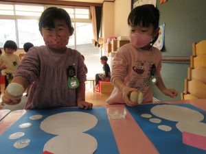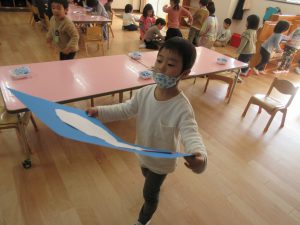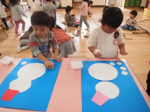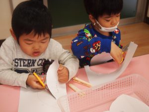 壁面に飾って、積雪を待ち侘びている年少さんです。