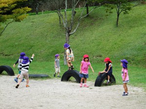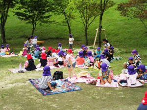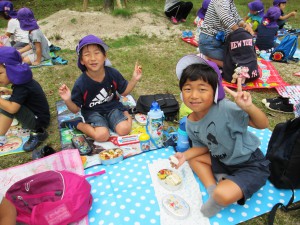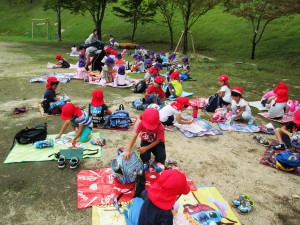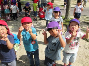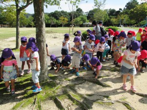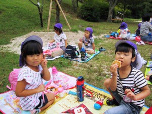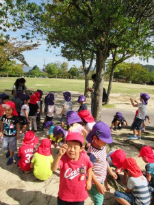 心配していた台風も去り、この日は年中さんの広島市森林公園への遠足です。