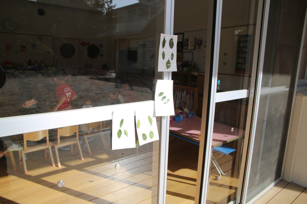 とげとげの葉を見つけて、教室の入り口に貼りつけ、