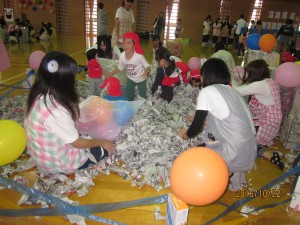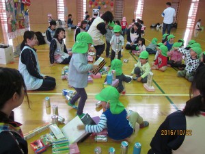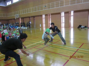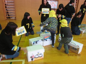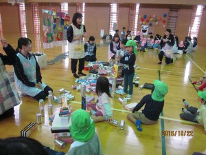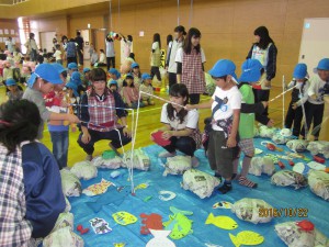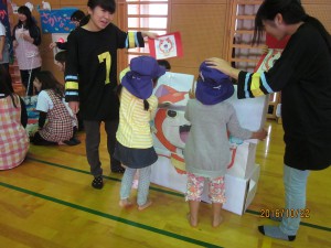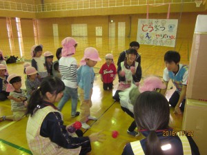 動物餌やりの玉入れや、箱や缶の積み上げ競争、