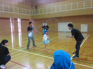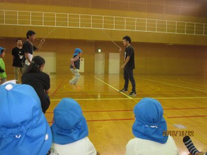 アリーナに遊びのコーナーを設置して楽しませてくれました。