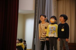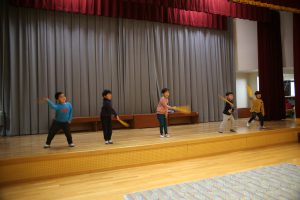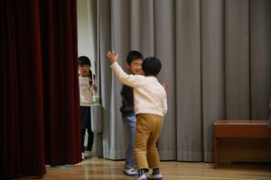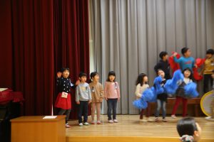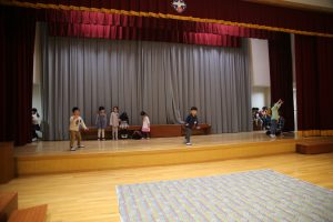 2021.02.17 年長 発表会に向けて⑤(年長) 2021年 2月 年長さん、発表会に向けてのステージ練習が進んでいます。 年少・年中…と、発表会の楽しさを味わいながら、進級していった年長児… 今年の年長児は、「美女と野獣」・「さるかに」を、発表してくれます。 さすが、みんなの気持ちがひとつになって、とても集中して劇あそびが進んでいますよ。 年長最後の大きな行事、発表会!意気込みもばっちりのようです! 一覧に戻る