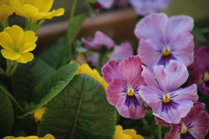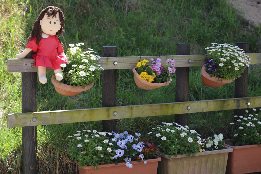 幼稚園の花々も、