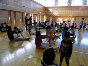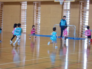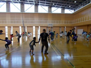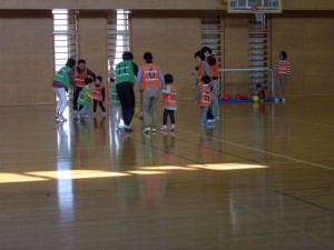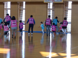 子どもたちは、広い大学のアリーナを駆け回りました。