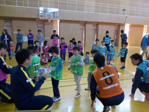 コーチとのハイタッチ、そしてお土産までもらい大満足の子どもたちでした。