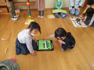 年長さんの遊びをおもしろそうに見たり…