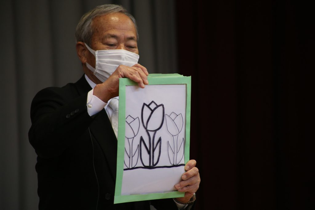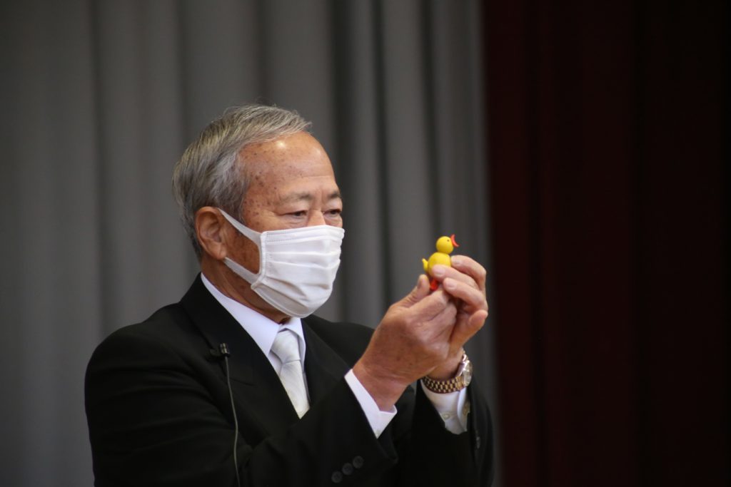 岡本理事長先生は、小さな小鳥を取り出され…
