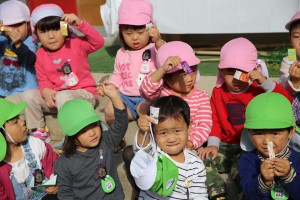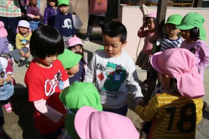 四角に切った広告がチケットとして次々に年少児に配られました。