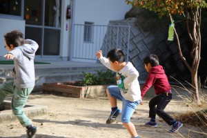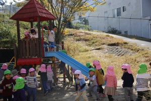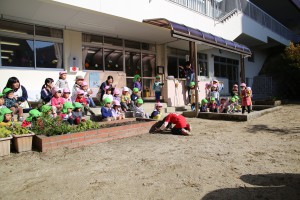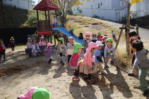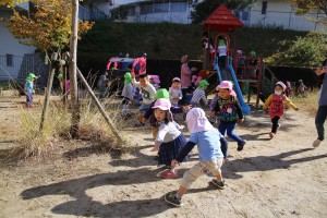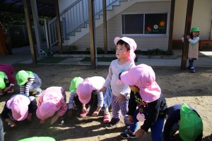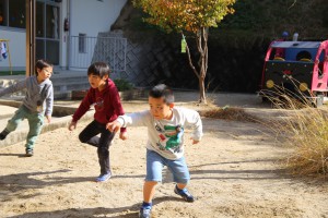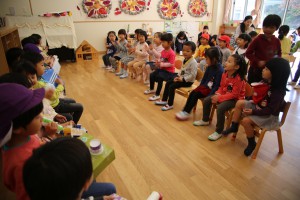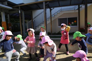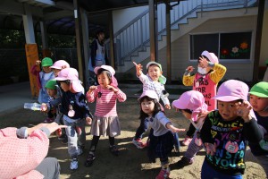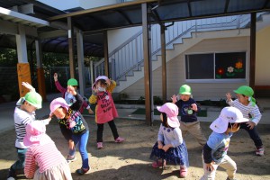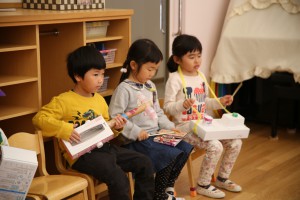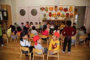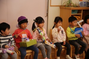 そんな最中、年中さんのお部屋からは楽しげな音楽が聴こえてきます。