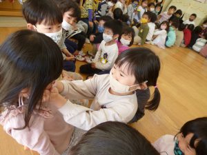 一方、年中さんは、ペア活動は初めて…