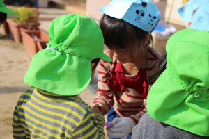 年中年少は、年長児にお手伝いしてもらい…
