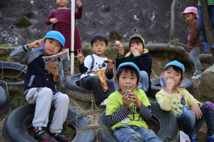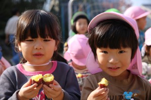 焼きいも屋さんのおかげで、みんなおいもを手にすることができ早速いただきます