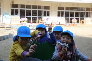 「あーおいしい」 「先生、おいしいね!」