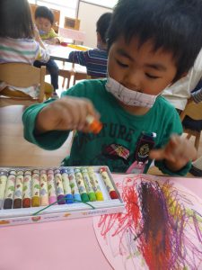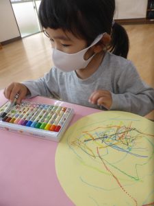 初めてクレパスを使って遊ぶ活動で、